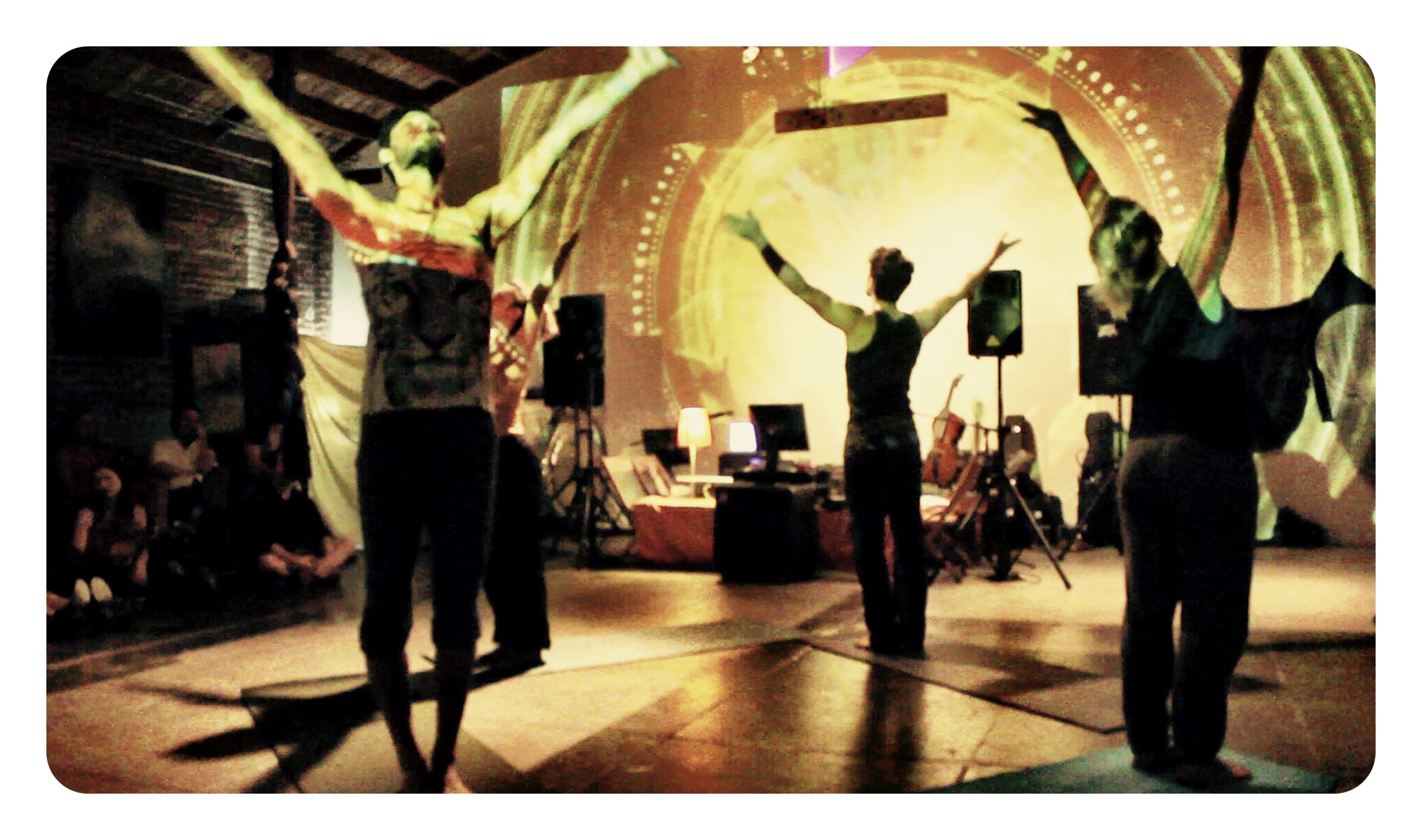 A sea of rhinestone studded faces, sparkled through the converted warehouse space as spacious music soared around relaxed conversations. Audience members meandered through the space finding chairs scattered around the room and pillows tossed on the floor. The beginning of the night featured a handful of experiences for the attendees: participants could drop in on Adam Yasmin’s Gongfu tea ceremony, share music in the loft with Vanessa Garcia, enjoy a Chakra meditation with Jeremy Hahn, try out pranayama in a mini workshop with Stephen Beitler or participate in an interactive art experience with Jane Brucker entitled Unravel.