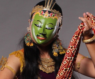 Panji Semirang, one of many versions of Panji stories about an East Javanese prince and his sweetheart, was a solo mask dance representing a young girl performing en travesti to mask her female identity as she travels the world alone longing for her prince. Depicting the young girl’s sadness and loss, this version, choreographed by Bambang Pudjasworo, was elegantly performed in the alusan (refined male) style by Astri Agustin Ayudiania. Ayudana’s attention to a balance of Bound-Flow and Free-Flow movement revealed her emotions and acceptance of her fate.