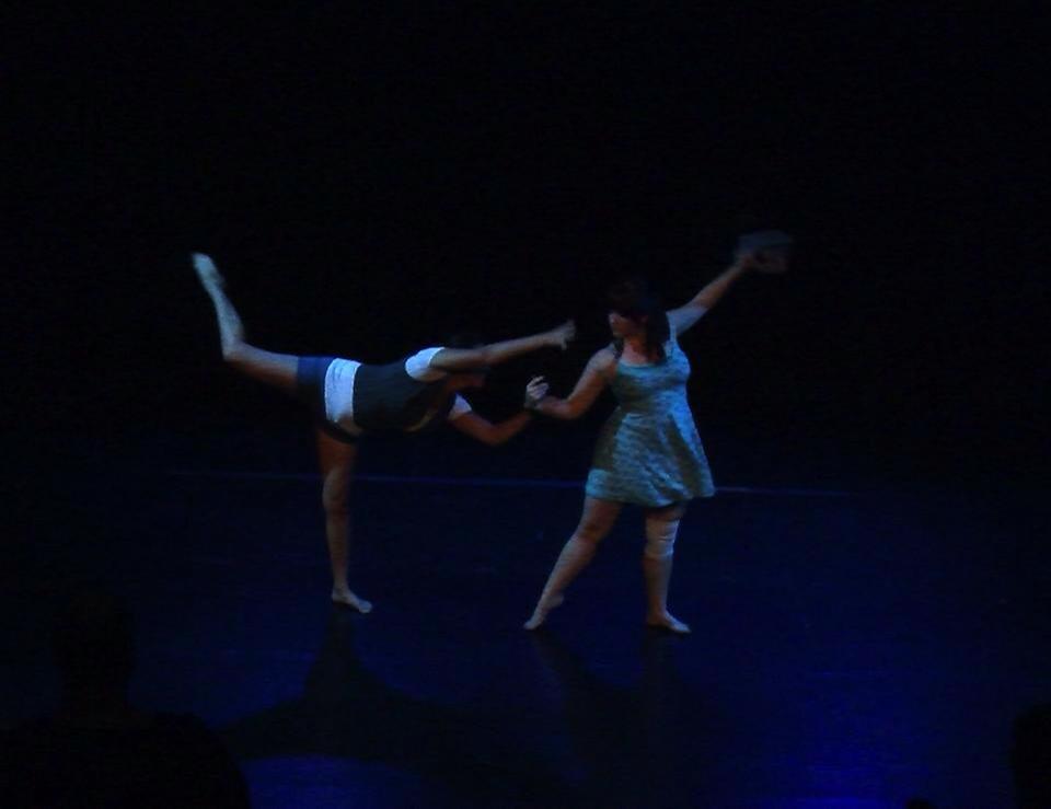 Another concert dance group here at the Rogue is Juxtaposition Dance from Irvine California. Performed by artistic director/choreographer Nahyr Galaz and dancer Anne Carr, Dancing with Plato is a sweet story of a young girl who finds herself crushing hard on her philosophy professor before being crushed by her own unrequited emotions. Galaz has a knack for humor and poetic wordplay. She integrates both into this hour-long show that featured Carr as the dreamy lovesick girl in battle with her more logical side (played by Galaz). Set to flirty tangos, Carr performed the material with ease and fluidity. Carr has a solid, classical dance foundation that she weaves in and out of her over-the-top comedic character moments. In contrast, Galaz is a less fluid performer technically, but a powerhouse in understated comedy. They were an unlikely pair that worked well with each other.
