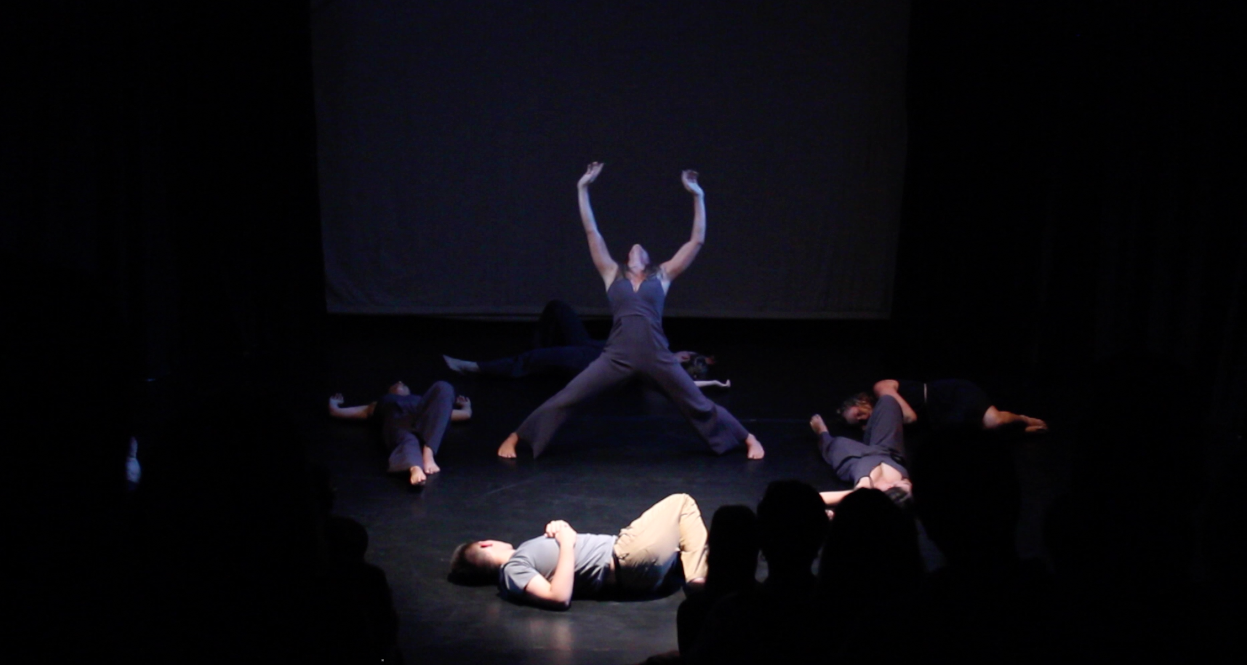 Leanne Iacovette showed her piece 2,900 set to a collection of short music selections ranging from Michael Giacchino to Codes in the Clouds. This piece was distinctly different from Reasoning due to it narrative structure. The dance told a story of a young and man and woman as they weathered the seasons of their relationship. The choreography was firmly rooted in Contemporary*. The gesture driven movement contained the familiar rhythm of impulse and accents combined with flowing torsos and arms. This dance used two choreographic devices that I found quite compelling. The first was the use of four dancers as the barriers between the couple. These dancers, dressed in brown one piece outfits, began as a landscape across the back of the stage, then became the companions of the two lead dancers, and then became the inanimate objects that drove the couple apart. While it might seem confusing as I write it, the intention was quite clear in the moment, and lead the narrative along nicely. The second device of this choreographer is her use of counterpoint and counter-balance in the space. The primary cast of the six often divided into two trios that danced simultaneously with different movement vocabulary and moving through the space in opposition. This created a strong sense of variety in the visual composition of the work and kept it from becoming stagnant. The seventh performer was a young man who slowly crept along the stage in the brief intervals that marked the four different periods of time. This dancer represented time for me and while his part was minimal, it was an unexpected and mature choice by this choreographer.