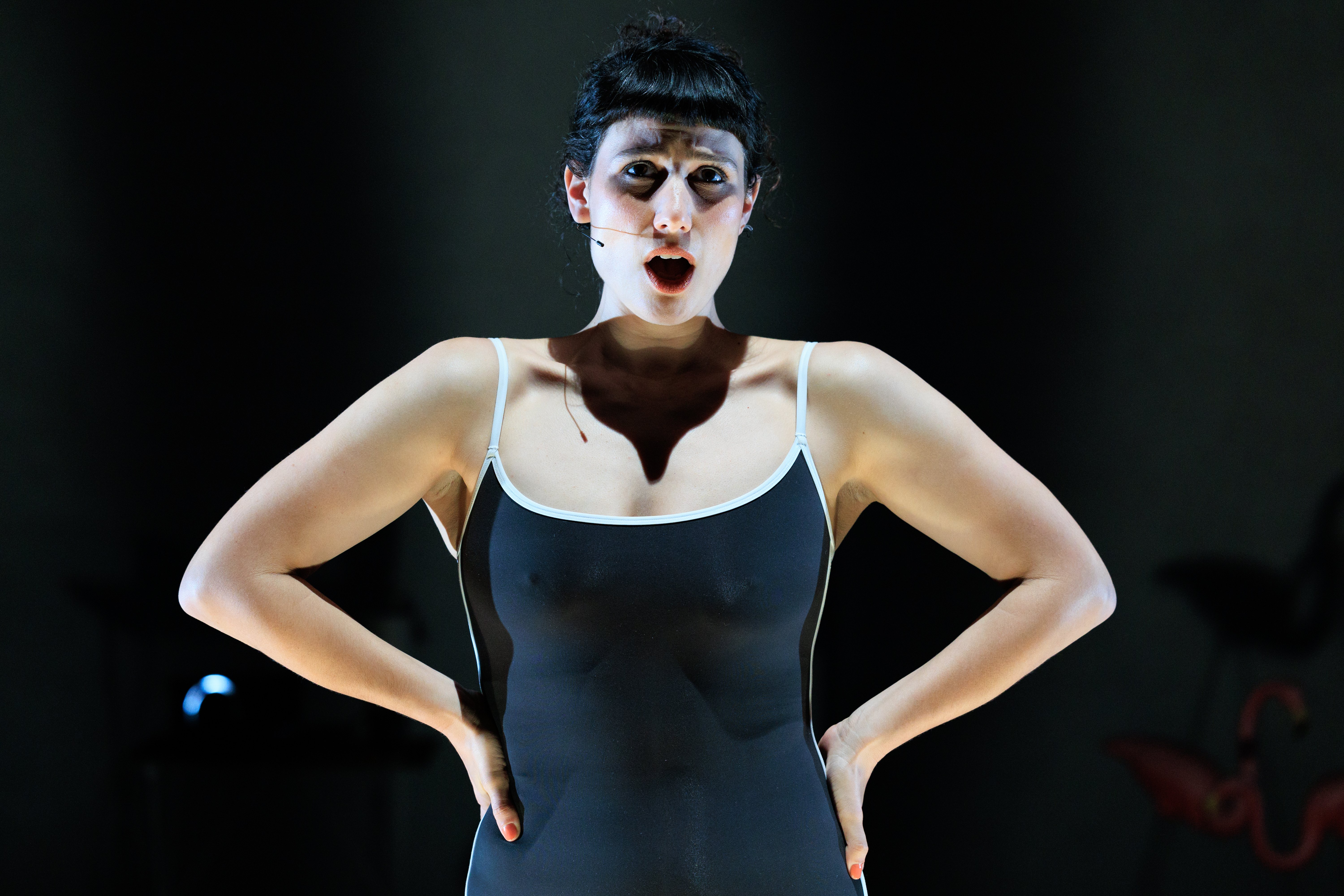 The 21st season of the festival opened on November 7th and welcomed a packed house for the 8:30 pm start time. The stage setting transported the audience into a poolside world with a white plastic lounge chair, a small radio, pink plastic flamingos, a kiddie pool, and a large inflatable fish. The piece, 7 Early Songs, began with vocalist and co-composer Eliza Bagg lying on the chaise lounge chair, wearing a sleek black one-piece bathing suit with white piping along the edges. Throughout the performance, we witnessed Bagg in her mundane, modern world, her body languid and heavy with the heat of summer. The new compositions were adapted from 20th-century twelve-tone composer Alban Berg’s Sieben Frühe Lieder (c. 1905–1908). True to the twelve-tone style, the song cycle had flexible melodies that floated through space and time without a strong anchor to either meter or traditional chorus-verse structures.