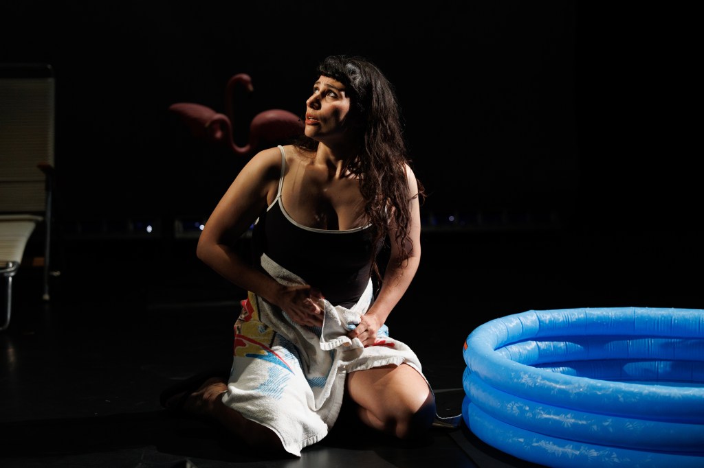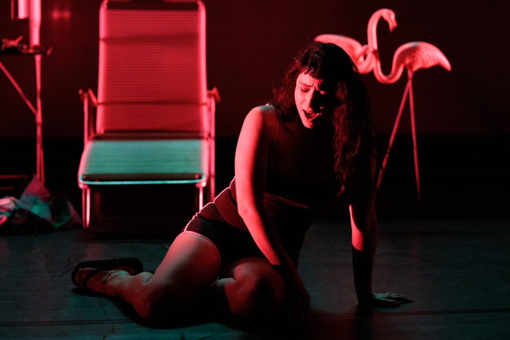 Bagg’s voice was lovely, both powerful and dynamically sensual, and its relationship to the world of dismay and discontent was palpable. In the end, it seemed this work was an opportunity to witness a beautiful woman misplacing her search for deeper meaning between a plastic lounge chair and a flimsy pool towel.